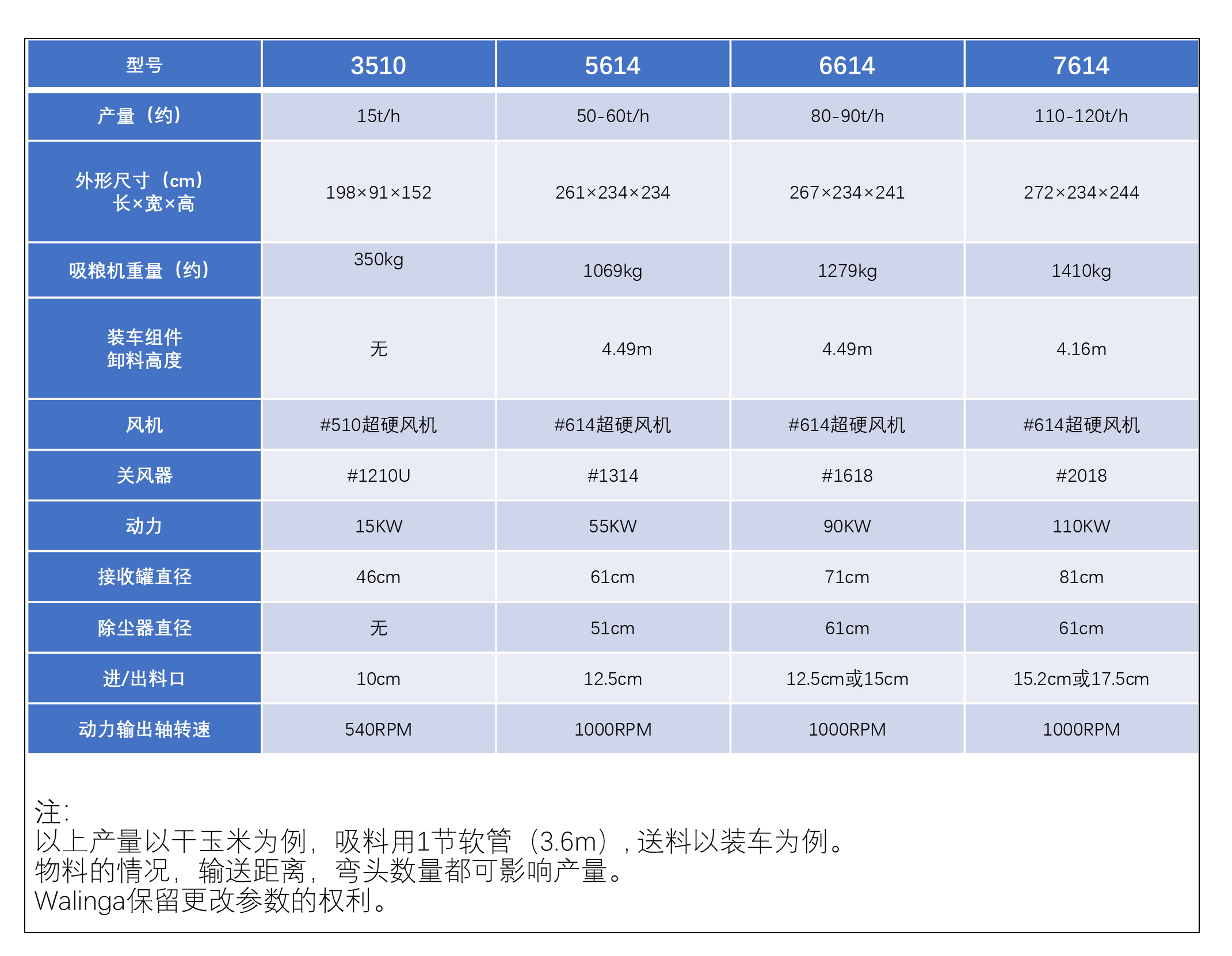 AGRI-VAC系列吸粮机 型号表